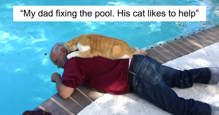 My Dad Fixing The Pool. His Cat Likes To Help. He Would Tell You Otherwise, But He Loves That Cat