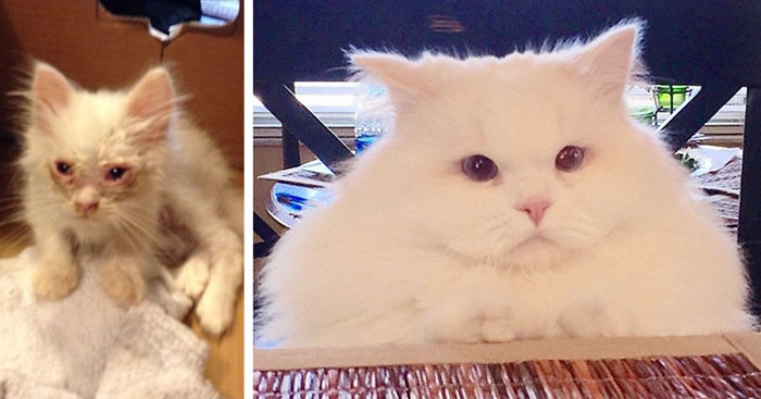 This poor kitten was near death when he was found on roadside by a caring Florida family. They adopted him and nursed him back to health. Much to their surprise, he turned into such a huge fur-ball that they even created an Instagram account for him to share his happy moments. “Silas before and after!” Wrote the family on Instagram. “He was left on the side of the road, and near death. We gave him a forever home.” They never expected this little guy to turn out like this!
