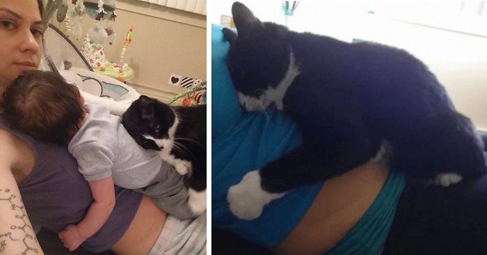 This Cat Has Been Guarding Her Little Human Since Before He Was Born