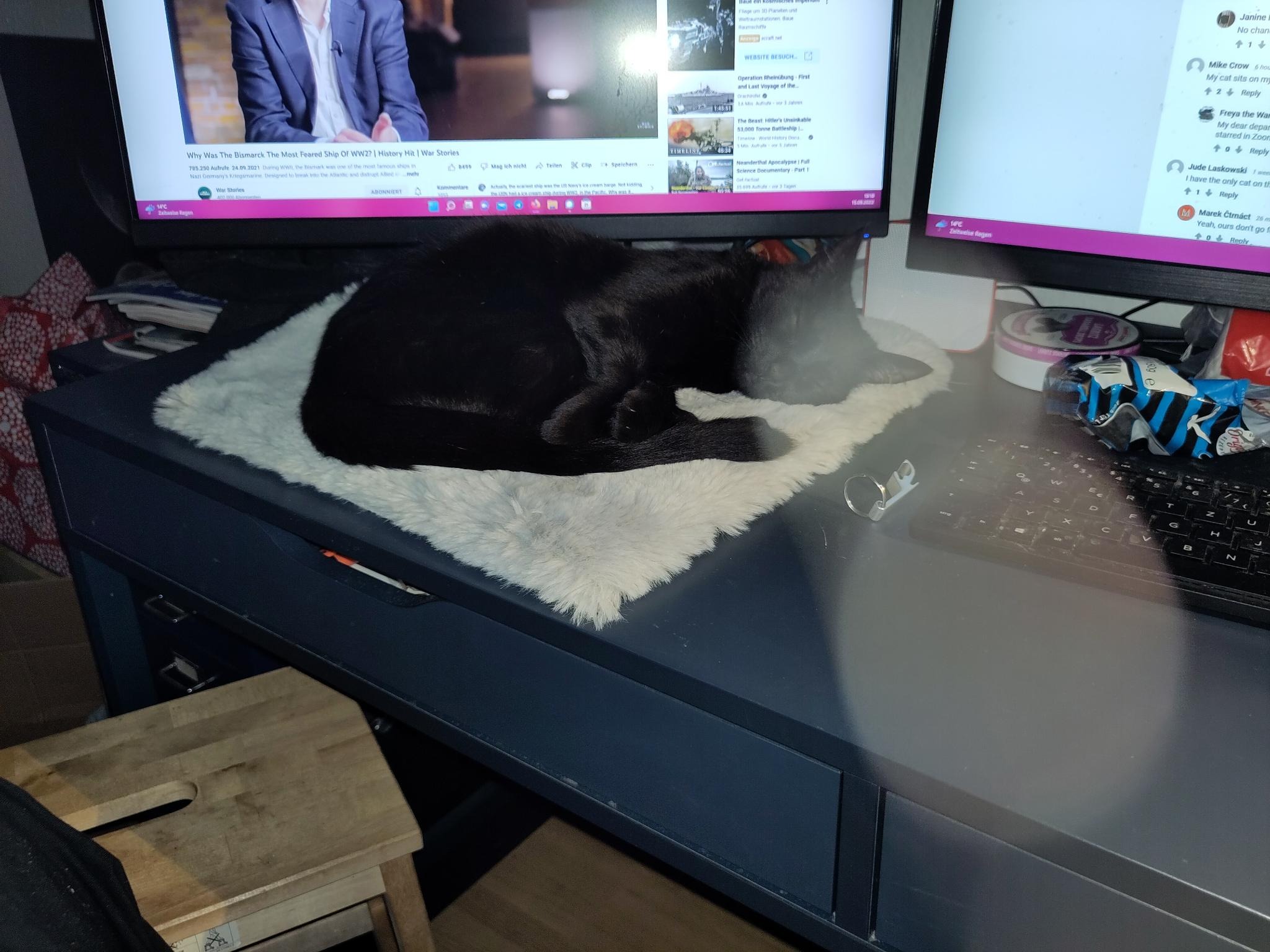 Load More Replies...My cat Alice prefers a fuzzy pillow, so I have one on my desk in front of the monitor. Alice-1509...9a2b9e.jpg