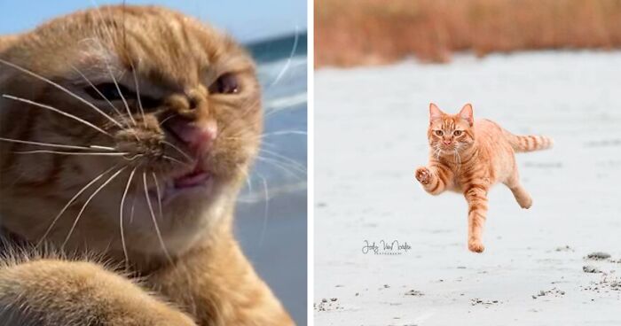 This ginger cat named Pumpkin is no exception. Recently, his family decided to take him along with his brother Moustachio to the beach for the first time ever, and this trip made them learn a bit more about Pumpkin’s unique personality. Turns out, their adorable ginger boy loves the beach but absolutely hates the strong wind.