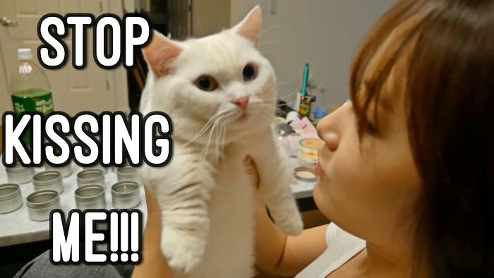 Cat refuses kiss from beautiful girl