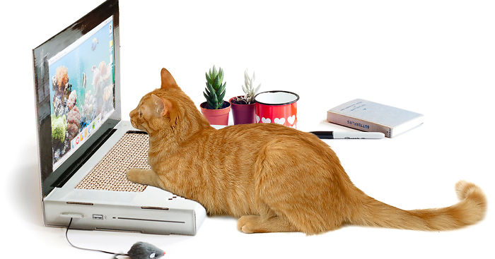 Laptop Scratching Post Lets Your Cat Work On A Computer Without Destroying Yours