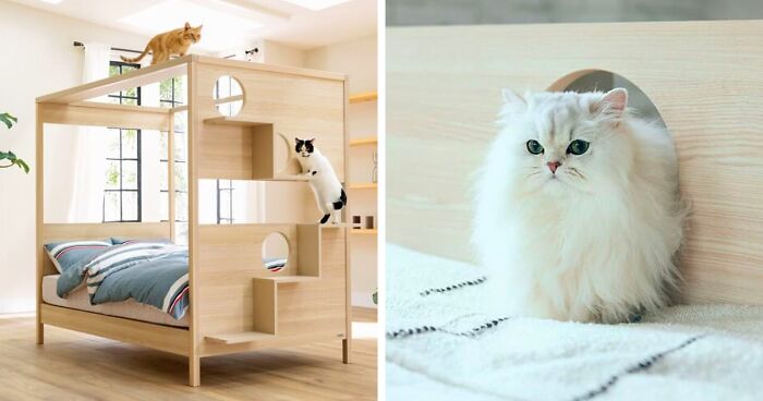 The unique piece of furniture is available in both single and semi-double sizes. It will cost you over $3,000 but your cat would probably assure you that its entertainment is worth way more than that. Scroll down to see pictures of this unusual cat-theme-park-of-a-bed.