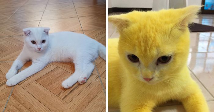 However, the poor cat turned yellow