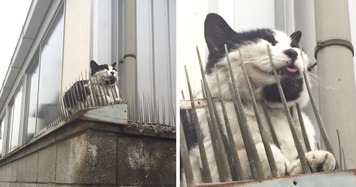 One of the theories is that due to prolonged exposure to the spikes the new generation of cats in Japan have mutated to adapt. I guess the cats are only laughing at a human attempt to stop them - and maybe even find their spiky "massage mats" therapeutic.
