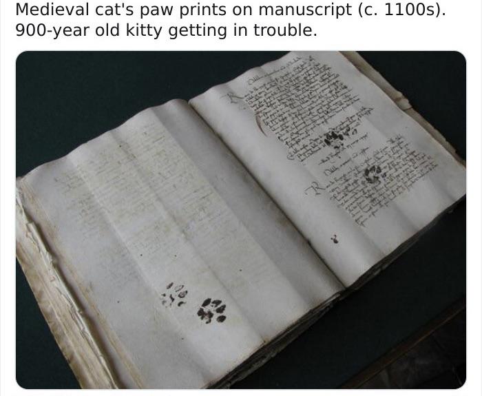 Cats have been mischief making since the dawn of time. I love these inky kitty pawprints on this Medieval manuscript. Cat-Paw-Pr...0b9d29.jpg
