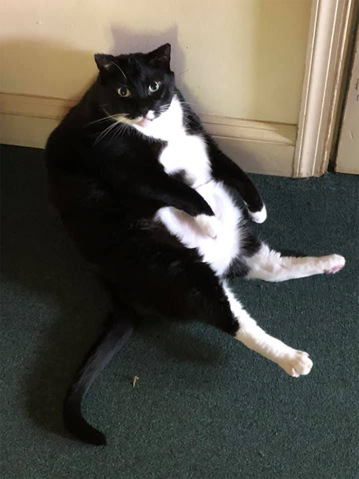 Many adorable cats, I have two, I give very little treats, reading the comments, we all agree, fat cats or dogs, is extremely dangerous, they are not happy, they do not feel good, the will suffer and die young, I beg people, if you love your PET, do something !!!