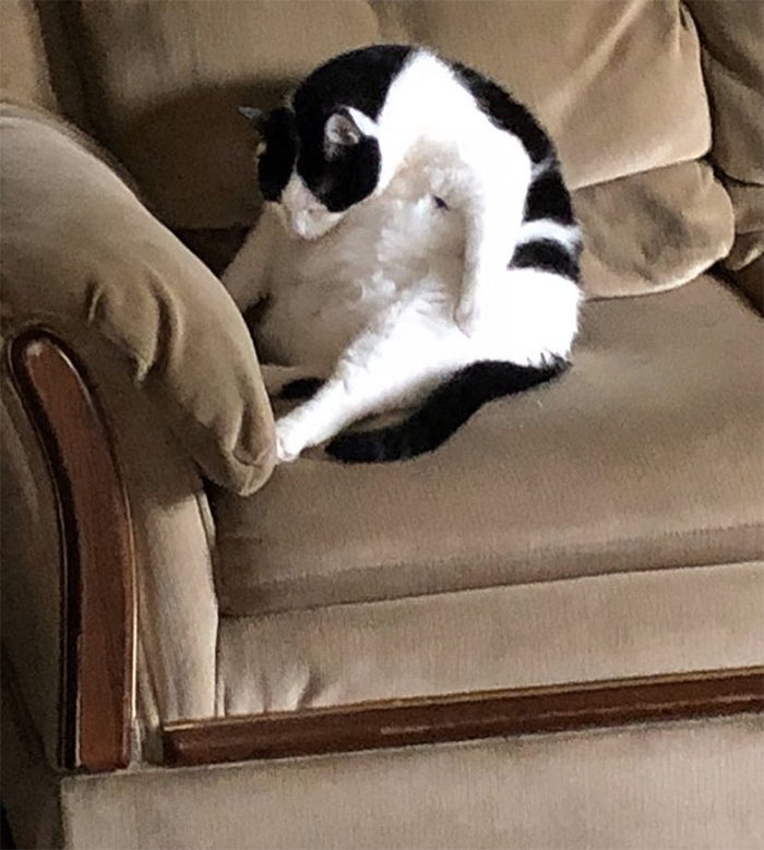 30 People On Twitter Share Pics Of Weirdo Cats Who Comfortably Sit In The Weirdest Positions