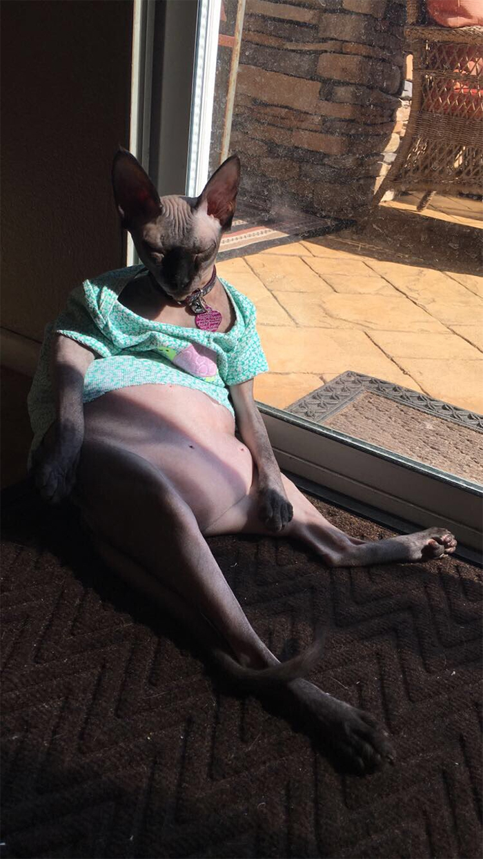 Left pic: “I’m going to KILL that tomcat who got me into this mess!” Right: “Ahhh, that’s over, thank god. Never again...Zzzzzz”