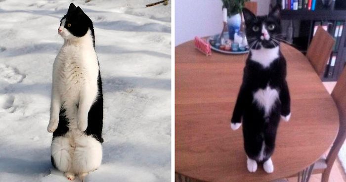 And yet, despite the fact that cats don't spend their vacation in the icy south, somehow they still have been influenced by penguins. So much so that some even started to adopt their way of like, walking and standing and sitting like the exceptional birds!