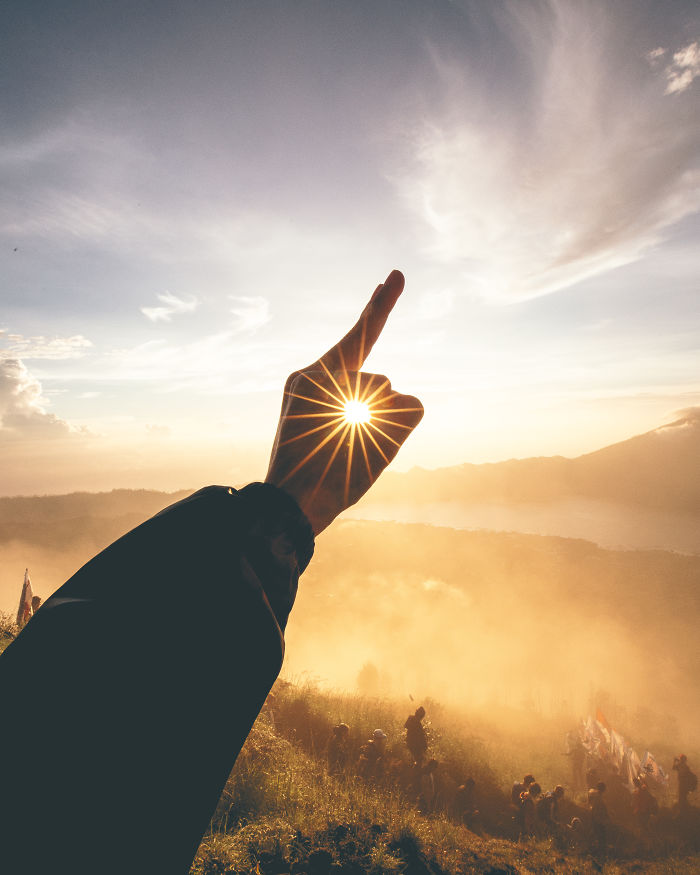 I wanted to capture the landscape with a different perspective. Hence i formed this ‘ok’ sign and let the sun pierce through the hole, it resulted in one of my favorite images till date.