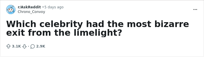 Whether by choice or otherwise, dozens of celebrities have vanished from the public eye, leaving fans confused, intrigued, disappointed, sad, and at times, suspicious. No carefully written statement or farewell tour, just here today and gone tomorrow. Someone asked, "Which celebrity had the most bizarre exit from the limelight?" and many of the answers read like a blockbuster that never made it to the big screen.