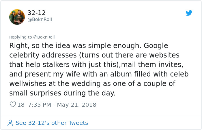 It turns out, that there's a very good reason why Louis did this. Apparently, he came up with this idea to surprise his wife Estelle with well wishes from some of the famous people they both look up to. "I try my best to come up with things that my wife will appreciate in life. I try to do one special thing for her every day. Sometimes just buying a chocolate. Other times planning takes a bit more time. So for our wedding day, I wanted to make sure there are a lot of little surprises for her throughout the day. This was one of them," he told Bored Panda.