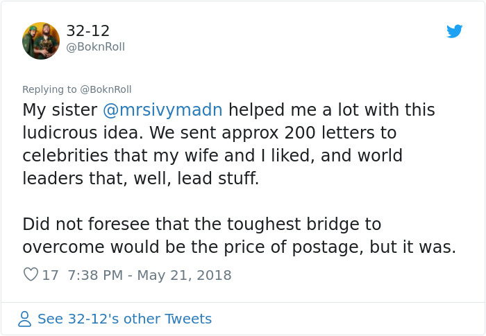 at least the actual celeb/world leader etc. responded, not some random person from their staff