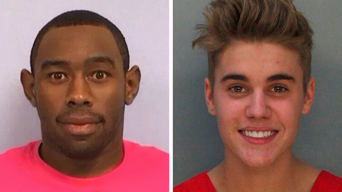 Sometimes, people smile in their mugshots. You'll see that in this list, for example, in Justin Bieber's mugshot. Experts say that it happens increasingly more often, and some possible reasons might be inebriation, being disoriented, or mental illness.