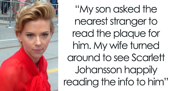 This happened yesterday! My wife took my son to the zoo, and he wanted to read every little plaque in the reptile area. My wife was distracted for a moment, so he asked the nearest stranger to read the plaque for him. My wife turned around to see Scarlett Johansson happily reading the info to him.