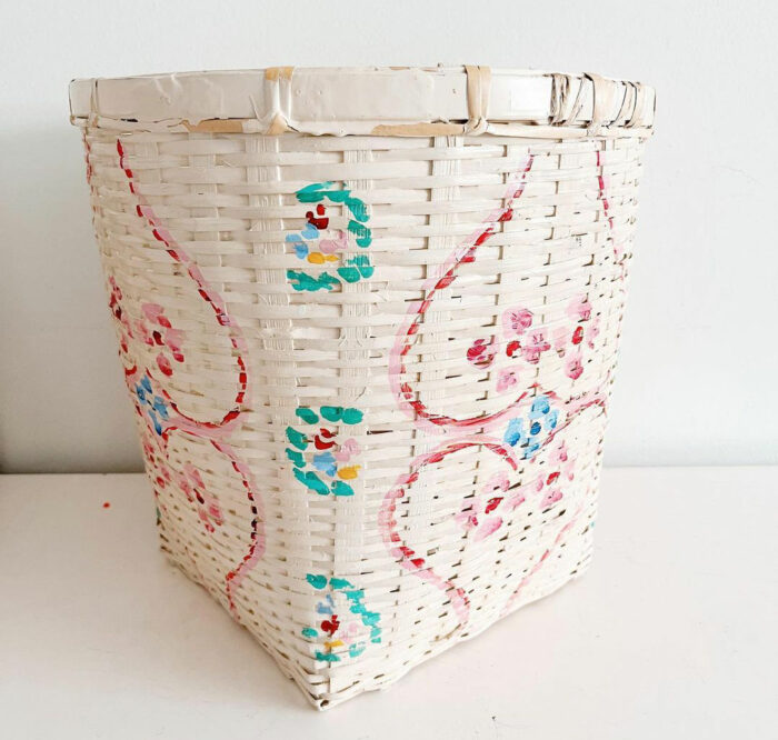 Since baskets don’t have a smooth surface, you must use a small stiff brush to apply the chalk paint. Be careful and paint designs or add patterns like dots for a splash of color.