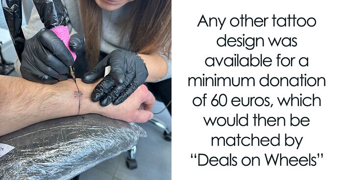 Any other tattoo design was available for a minimum donation of 60 euros, which would then be matched by “Deals on Wheels”