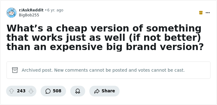 People online, netizens, if you will, share their favorite examples of cheaper versions of items that are really just better than their expensive counterparts. So get comfortable as you scroll through, upvote your favorites and list your own examples in the comments section below.