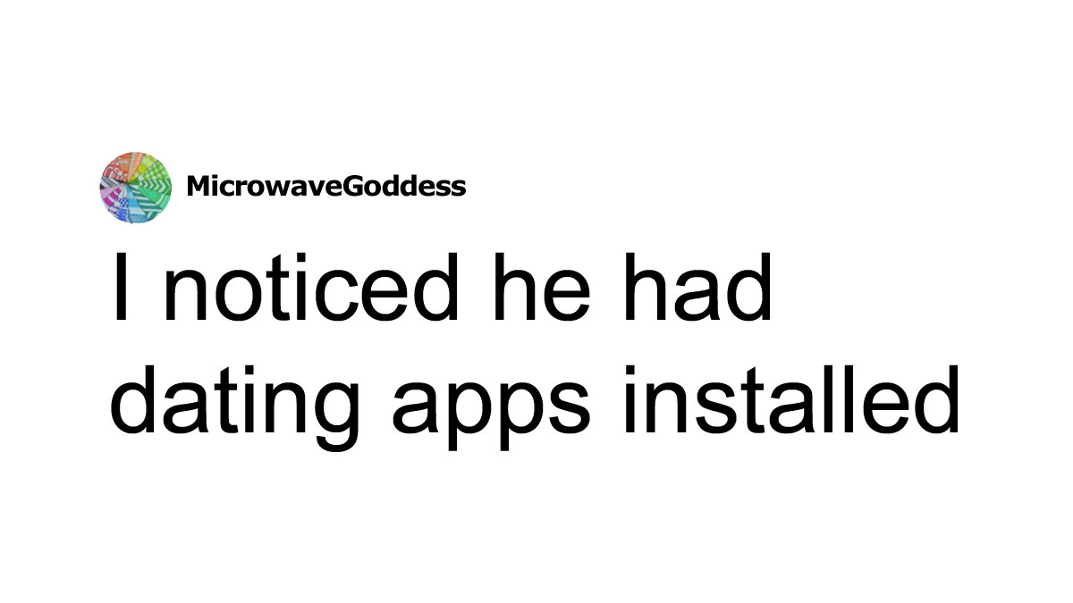 I (f14) have solid, concrete evidence that my father is cheating on my mother. I can see what apps my father has on his phone via family sharing, and while I was scrolling through them for fun, I noticed he had dating apps installed.
