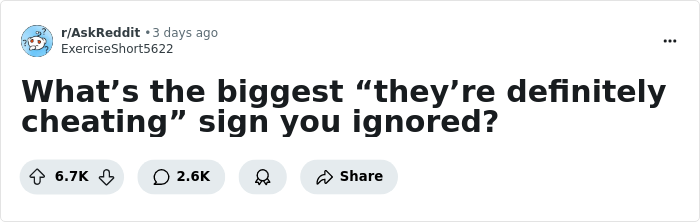 “What’s The Biggest ‘They’re Definitely Cheating’ Sign You Ignored?” (40 Answers)