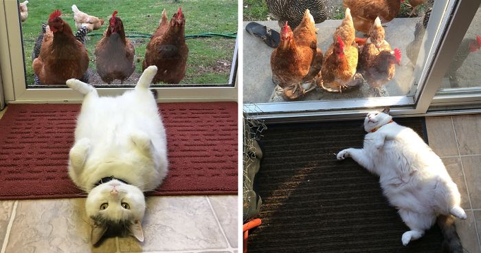 Meet Scruffles, the fat cat who has more admirers than you – and we’re not talking about the impressive number of his 42k Instagram followers, but about the chickens who line up to watch him pose. Yup, other than lying around doing nothing all day, this particular fatty likes to strike a pose or two for the audience of chickens who see him through a glass door and marvel at the spectacle. He doesn’t understand why they’re so obsessed with him, but they are.