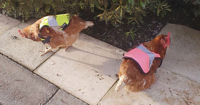 Man Grows Tired Of His Chickens Always Escaping The Coop So He Buys Them High-Visibility Vests