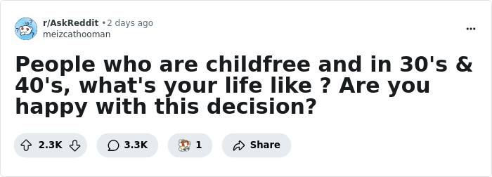 Redditors in their thirties and forties who never had kids have recently been opening up about the realities of being childfree, so we’ve gathered some of their most insightful replies below. Whether you knew from a young age that you always wanted to be a mother or you’re on the fence about whether or not to start a family, we hope you enjoy hearing these people’s perspectives. And keep reading to find a conversation with the person who started this thread!