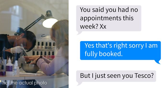 The fact that you’re willing to pay a person for their services doesn’t give you full control over their lives. After all, it is a transaction. Both parties have to agree on its terms. And while this sounds like basic logic to most of us, some people simply don’t get it. Like this choosing beggar. After spotting their manicurist at a grocery store after hours, they got furious because… the nail technician chose family instead of making an appointment.