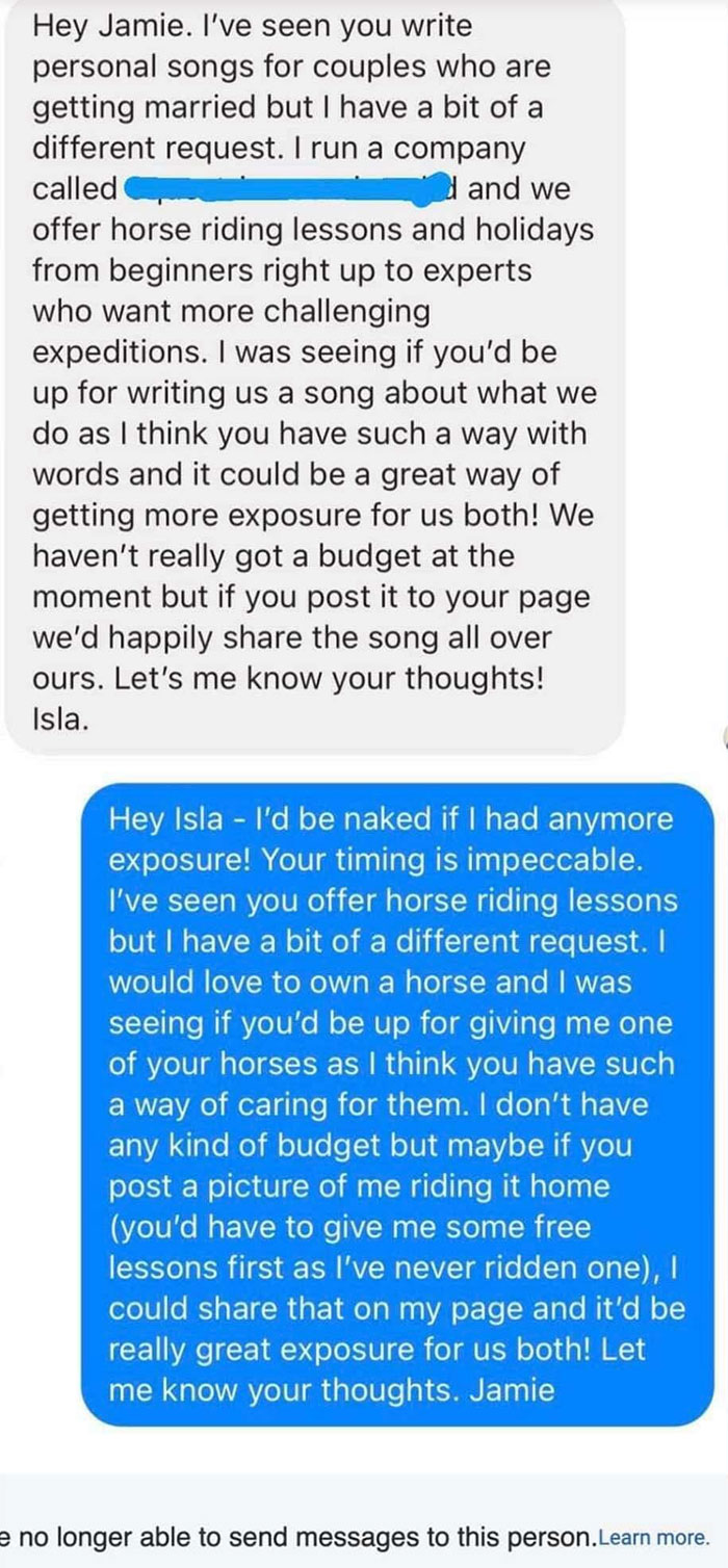 It's Even Worse Than Saying "You Will Get Lots Of Exposure", Even In This Situation