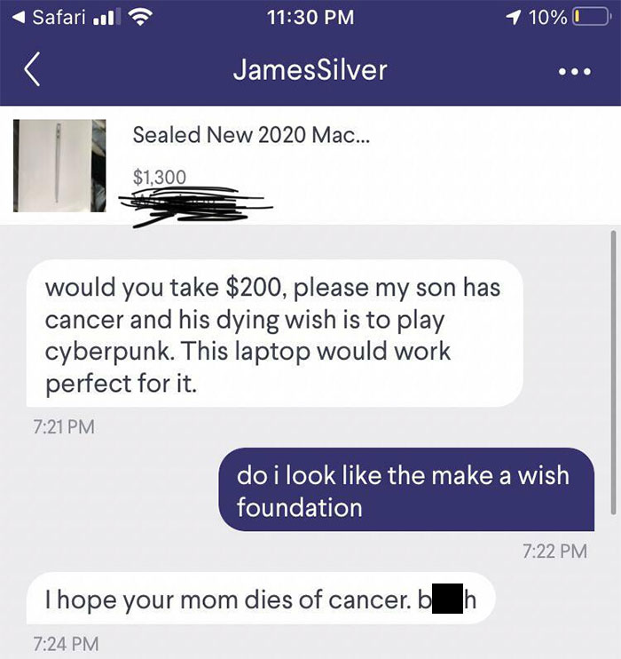 Load More Replies...Minor compared to these, I had a close call with one CB last year. There was a game I really wanted someone was selling on FB Marketplace for $15. Now, I know I live out of the way for a lot of people and I know people know it's risky to meet up at personal addresses, so I offered to meet her somewhere public. She said she had to go to one area in town, anyways, and I could meet her there. Take note of that detail. It was the day I was going to meet up and I asked to confirm the price was still $15, she said yes. Then a little while later, about an hour before I had to leave for my bus (would have taken 2 bus rides to get to the location she would be at.) and she said she wanted me to pay her an extra $5 for the gas and went on how fair it would be to compensate her for having to drive all the way to that location. Now, $5 isn't exactly a huge, huge deal to some. But.. case in point, I ride the bus. $5 is less than it would cost me to go there and back home, with a transfer. I cancelle