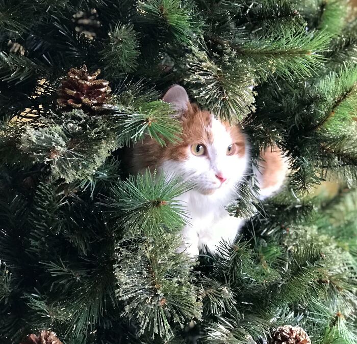 Every Year My Cat Forgets What A Christmas Tree Is And Re-Discovers The Wonder