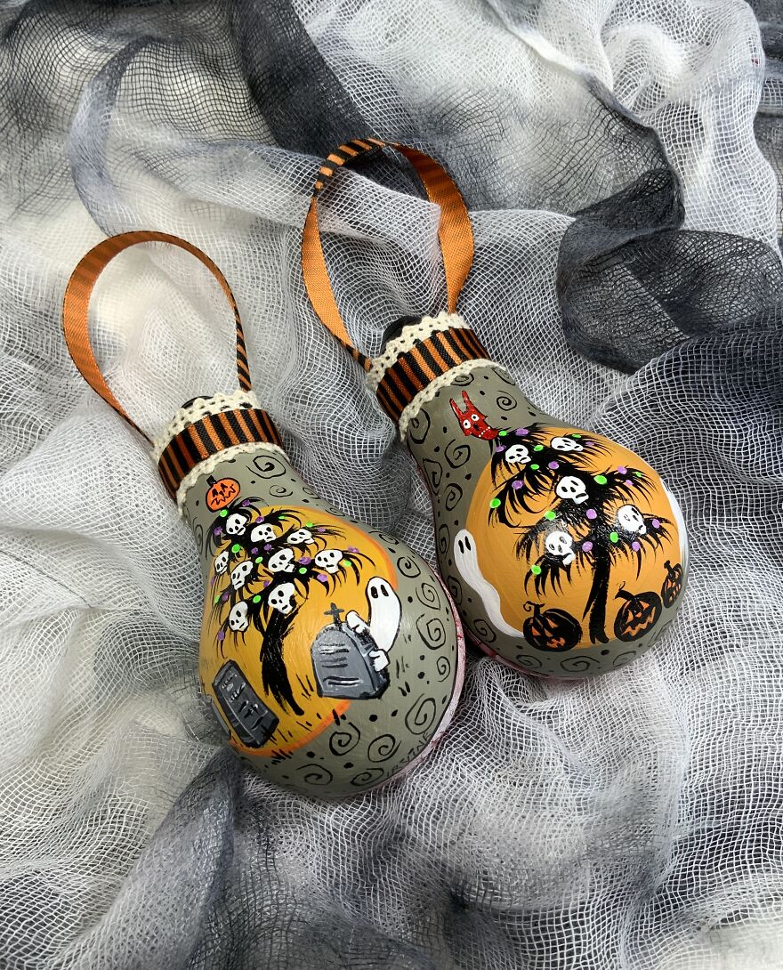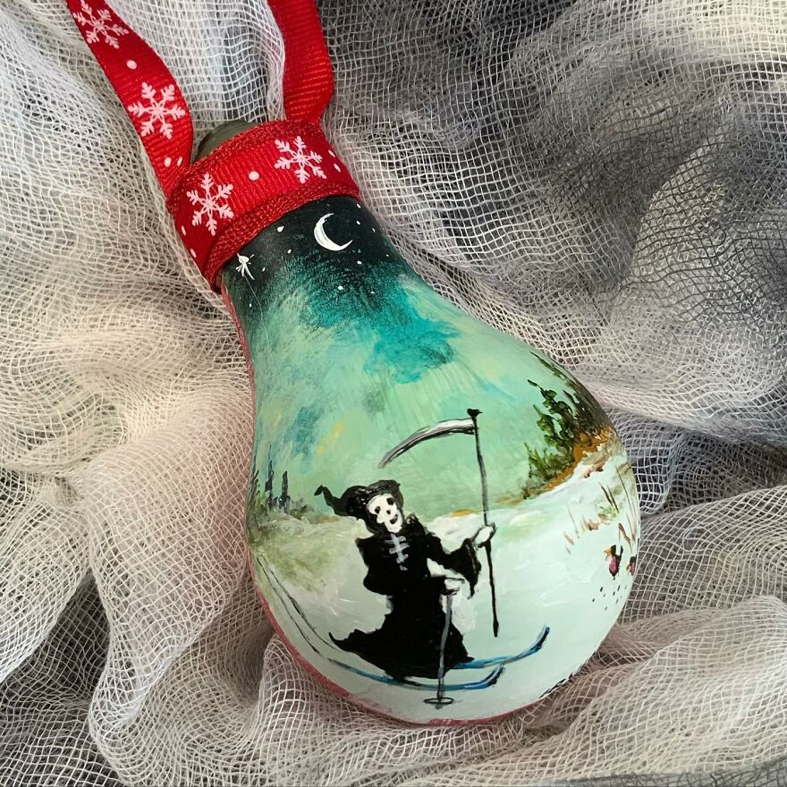 I Paint On Burnt Out Lightbulbs To Repurpose Them As Christmas Tree Ornaments (60 Pics)