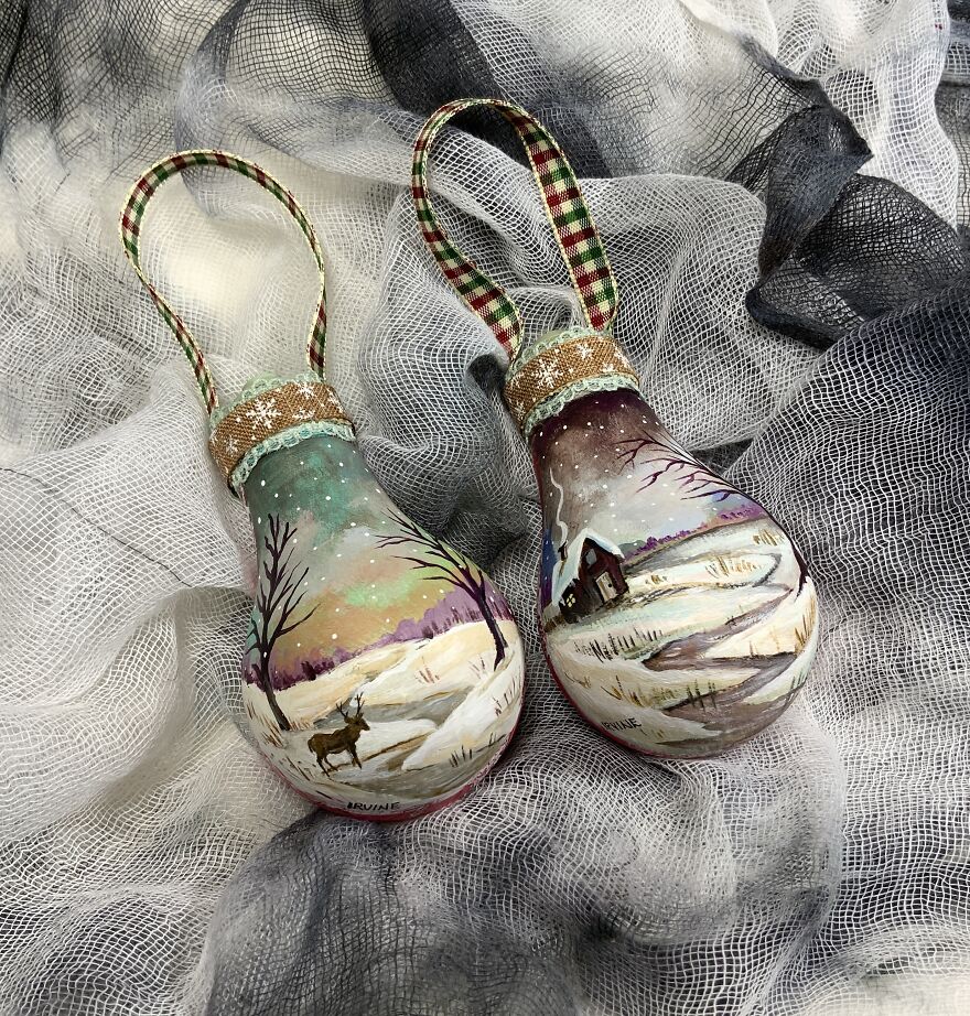 I salvage burnt out lightbulbs and create truly one-of-a-kind festive ornaments.