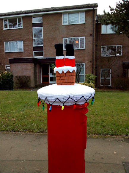 I made a paper christmas hat to put on a halloween decoration that didn't come down.