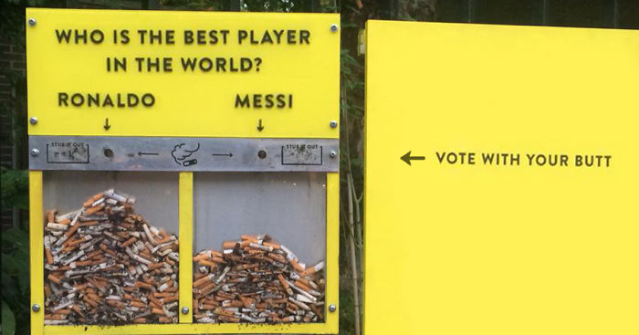 UK organization Hubbub plans to clean up the streets of London through its #neatstreets campaign. One clever project sees smokers vote on various topics by placing their cigarette butts into clear divided containers in public areas; another uses devices that play music when a cigarette butt is inserted; and yet another encourages gum-chewers to connect the dots on specially designed boards.
