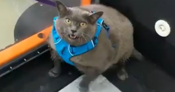 Since the first video of Cinderblock was posted, the gray cat has become an internet celebrity. Since then, the veterinary hospital has periodically updated people on Cinderblock’s progress. Thousands of people loved the hilarious first video in which the chubby cat is seen sitting on the edge of the treadmill and using just one paw to move it. “You working out?” a veterinarian can be heard asking in the background of the video.