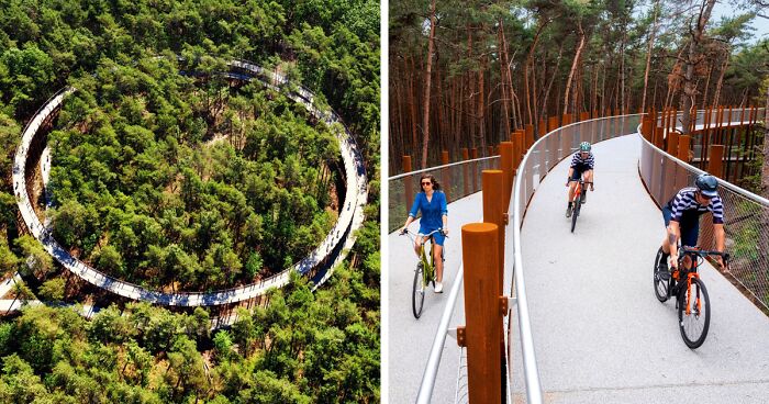 In order to promote sustainable tourism and encourage people to get out into nature, a Belgian tourism organization called Visit Limburg has been working on cool cycling trails for quite a while now. Their first project called “Cycling through Water” appeared back in 2016 and it’s a path allowing visitors to cycle more than 200 yards through a pond. Their second project “Cycling through the Trees”—the one that this article is about—appeared last year and recently has been gaining a lot of attention from nature and active leisure lovers all around the world.
