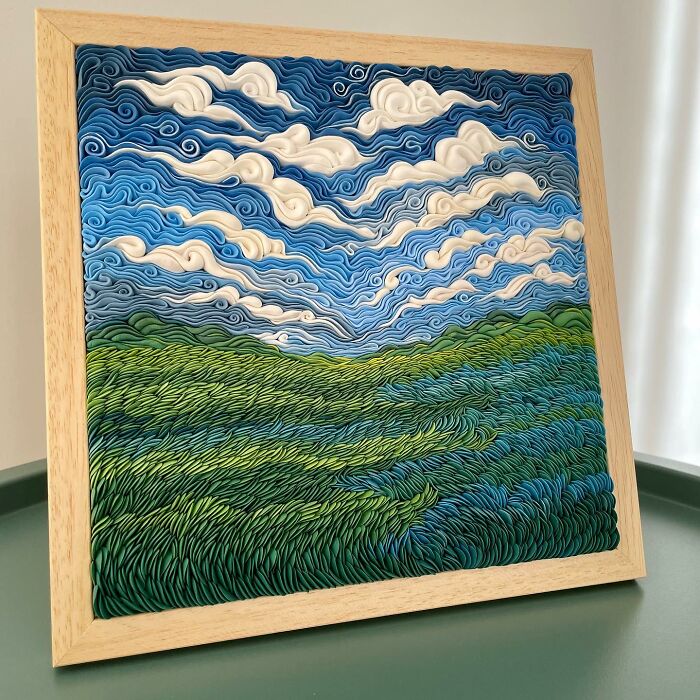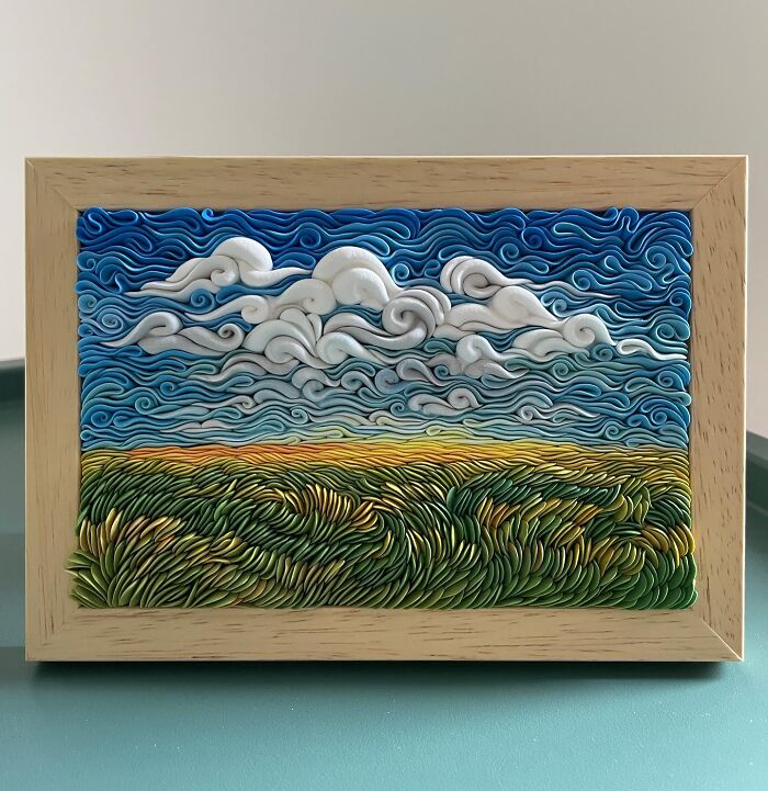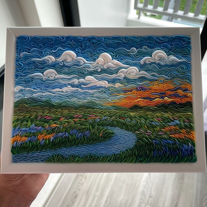 Alisa Lariushkina, a skilled clay artist, embarked on her creative journey by making brooches, necklaces, and magnets from polymer clay using a unique technique a while ago. However, by continuing her experimentations, she discovered that her clay style perfectly captures landscapes in the form of textured paintings.