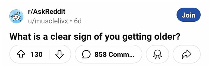 Internet user u/musclelivx recently inspired an interesting discussion on r/AskReddit. The online community members shared what they think are some of the clearest signs that someone’s getting older, from feeling way out of touch with pop culture and trends to taking their physical health far more seriously. Scroll down to check out their opinions and experiences.