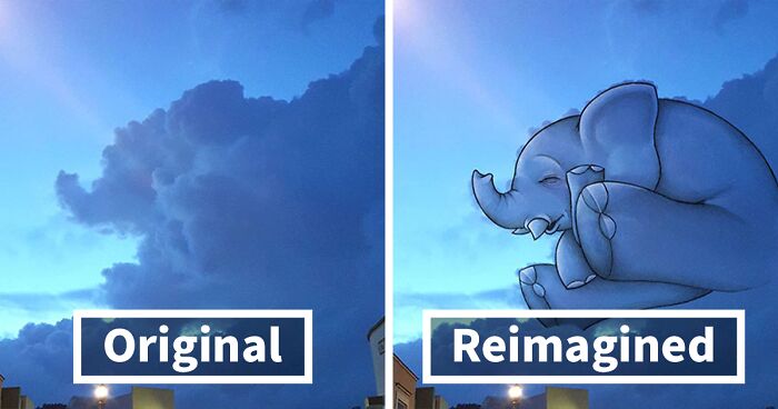 The artist told Bored Panda: “I was a bit stressed at work one day, and I went outside to catch a little break. While I was sitting on the stairs, I looked up at the sky and saw a cloud that looked exactly like a puppy and drew a quick sketch over it. It reminded me how I used to do it when I was a kid and everything was easier back then. Since that day, I always take a minute every day to look up at the sky, see what I can find, and remind myself that it’s always the little things in life that make you the happiest.”