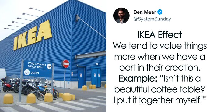 Or the IKEA effect that was named after the brand, which makes customers build their own furniture as that makes them appreciate the thing more