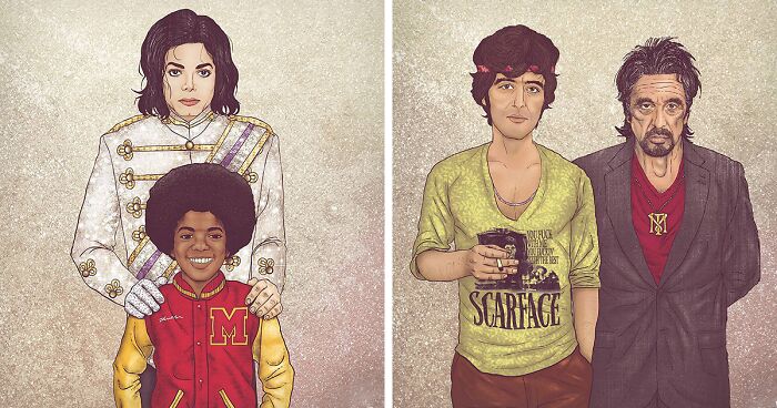 This Artist Drew Celebrities With The Younger Versions Of Themselves, And Here Are The Best 19 Pics