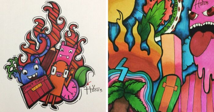 I have made these artworks drawing inspiration from talented artists like Vexx and Gawx. I have been an artist since 2019. I have loved art and my ultimate goal is to make people happy which is why I usually steer away from darker hues.