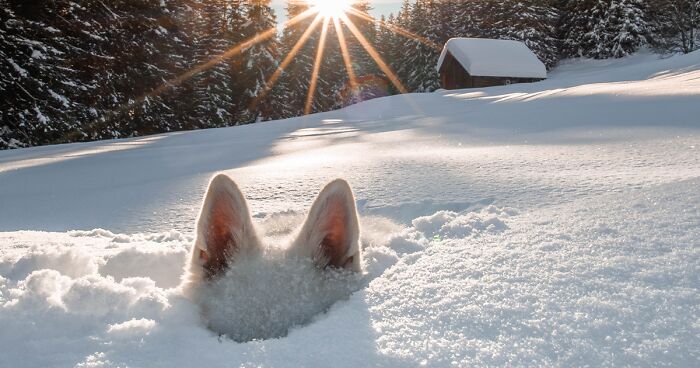 "I took this great picture in deep snow in Grindelwald. My dog Raasta, spontaneously hid so that only his ears were sticking out of the snow."