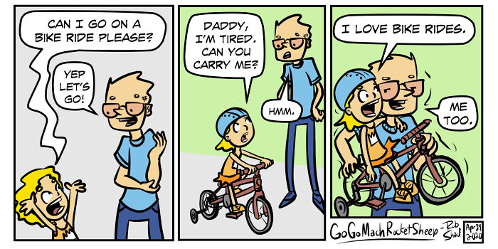 I made these comics to document some of my successes, lots of my failures, and to give others a laugh at my expense. For your convenience, I've titled each comic with a dad-hack pro tip. Thanks for reading!