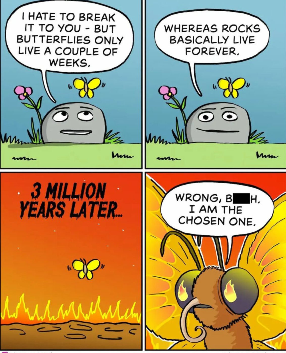 Don't worry! In three million years, the rock will be gone. The butterfly will make sure of that.