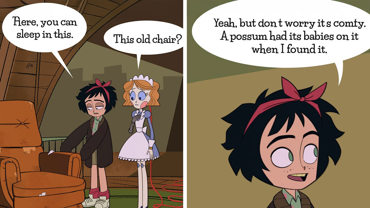 Emmy has a strong sense of duty, but also a natural curiosity. With that in mind, we asked Dominic how he went about shaping her personality. "I knew the center of the story would have to be about the ideal 'perfect robot' who ends up separated from her duty and home. So her sense of self has to be tied up into her job," the artist shared. "But of course, she is a learning robot, she observes, imitates, and intends, much like a child would. She is a relatively new robot after all. She has surface knowledge, but doesn’t have a lot of lived experience."
