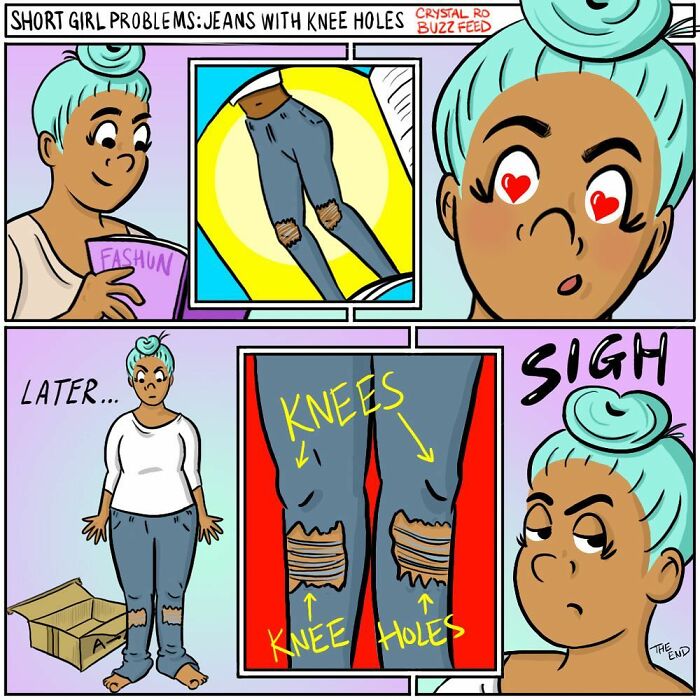 Let's talk about Crystal. One of her unique traits is that she's a writer who can also draw, and that's no small feat, as these skills sometimes run opposite to each other. The Los Angeles-based artist works at BuzzFeed as a senior editor, and makes her comics between her work and her day-to-day life. But her comic passion project is picking up slowly but surely, and she enjoys a solid 20k followers on her Instagram. Who knows, maybe she'll pursue her hobby full-time someday? In any case, let's hope that Crystal does whatever she wants to.